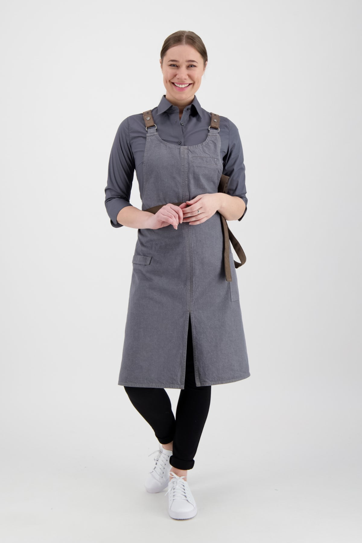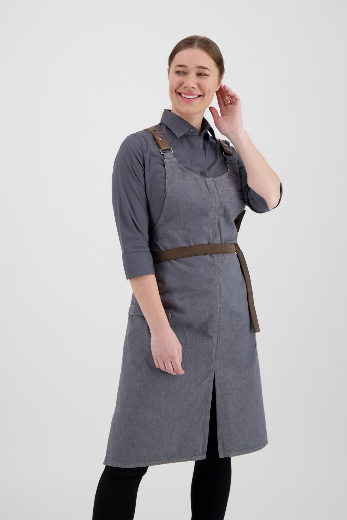 Bib Apron Forene Cross Grey Denim