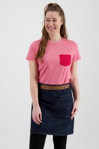 Het T-shirts met ronde hals en korte mouw is geschikt voor zowel dames als heren en is voorzien van een borstzak links in een contrasterende kleur.
